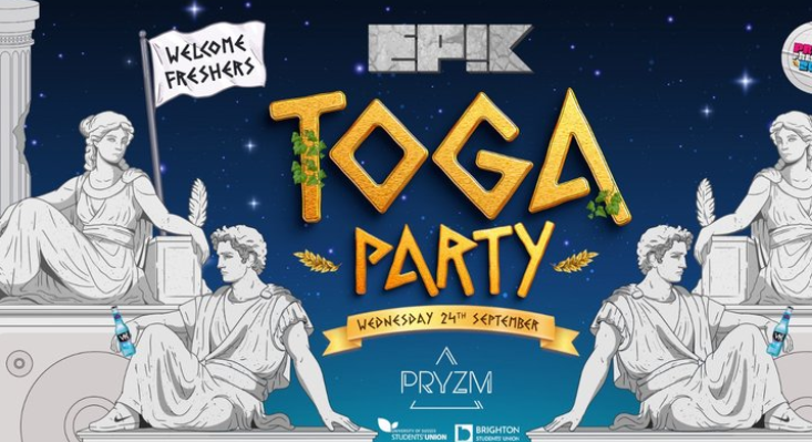 Attend the Freshers Toga Party at Pryzm‘s EPIK Wednesdays night. This freshers event will take place at Pryzm’s nightclub on Wednesday, September 24, from 10.30am to 4pm.