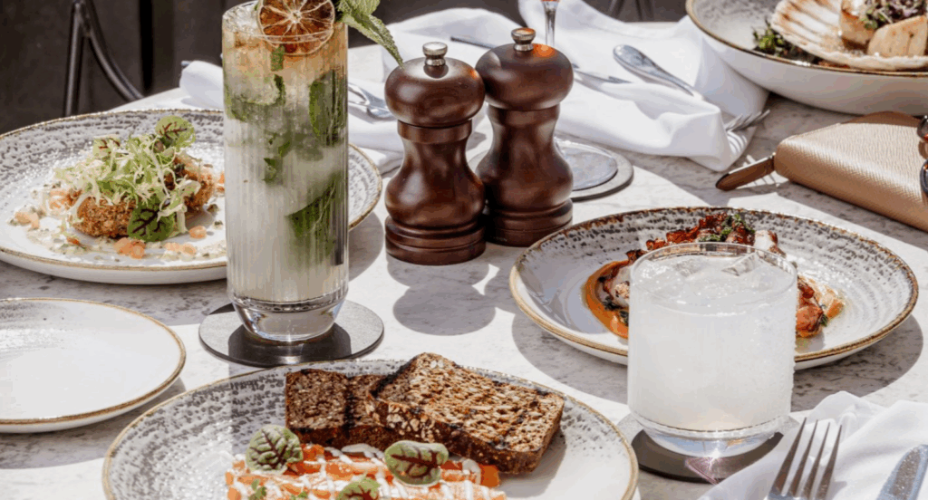 Dinner is served daily, from 6pm to 8:45pm, and options include tacos and oysters. There are also small plate options, such as beef tartare, salmon and rye bread, wood-fired scallop, chargrilled octopus and a refreshing Greek salad.